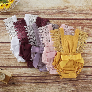 Baby Girl Solid Lace Design Hollow Strappy Sleeveless Romper