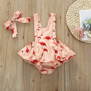 2-piece Baby Flower Print Tasseled Romper with Headband Set