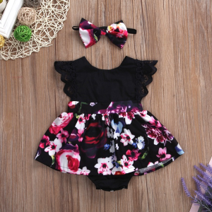 Baby Girl Floral Allover Sleeveless Romper and Headband