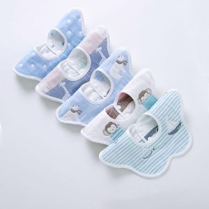 5-pcs Baby Bibs 360 Rotating Muslin Cotton Infant Saliva Bibs Cute Baby Gauze Bibs Infant