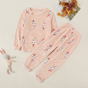 Pretty Rabbit Print Allover Flannel Long-sleeve Sweatshirt and Pants Set