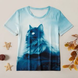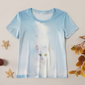 Stylish Cartoon Deer Print Long-sleeve Tee