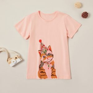 Fashionable Striped Ballet Girl Short-sleeve Tee