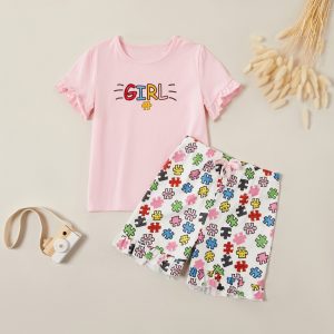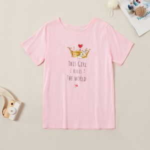 Casual Cartoon Dino Decor Short-sleeve Tee for Girl
