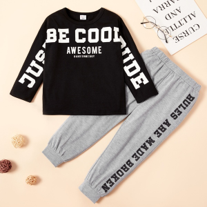 2-piece Toddler Boy Letter Print Solid Long-sleeve Top and Solid Letter Pants Set