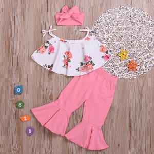 3-piece Baby Pretty Floral Dress Top and Polka Dots Pants with Headband Set