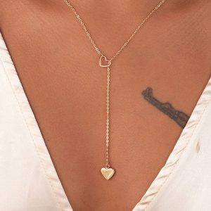 Women Gold Color Heart Party Pendant Necklace Fashion Simple Ladies Pentagon-Heart Jewelry Gifts