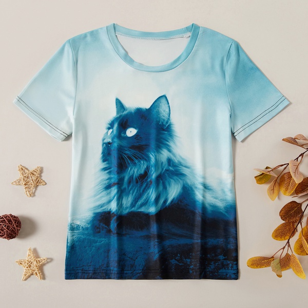Animal Print Short-sleeve Shirt and Solid Pants Set